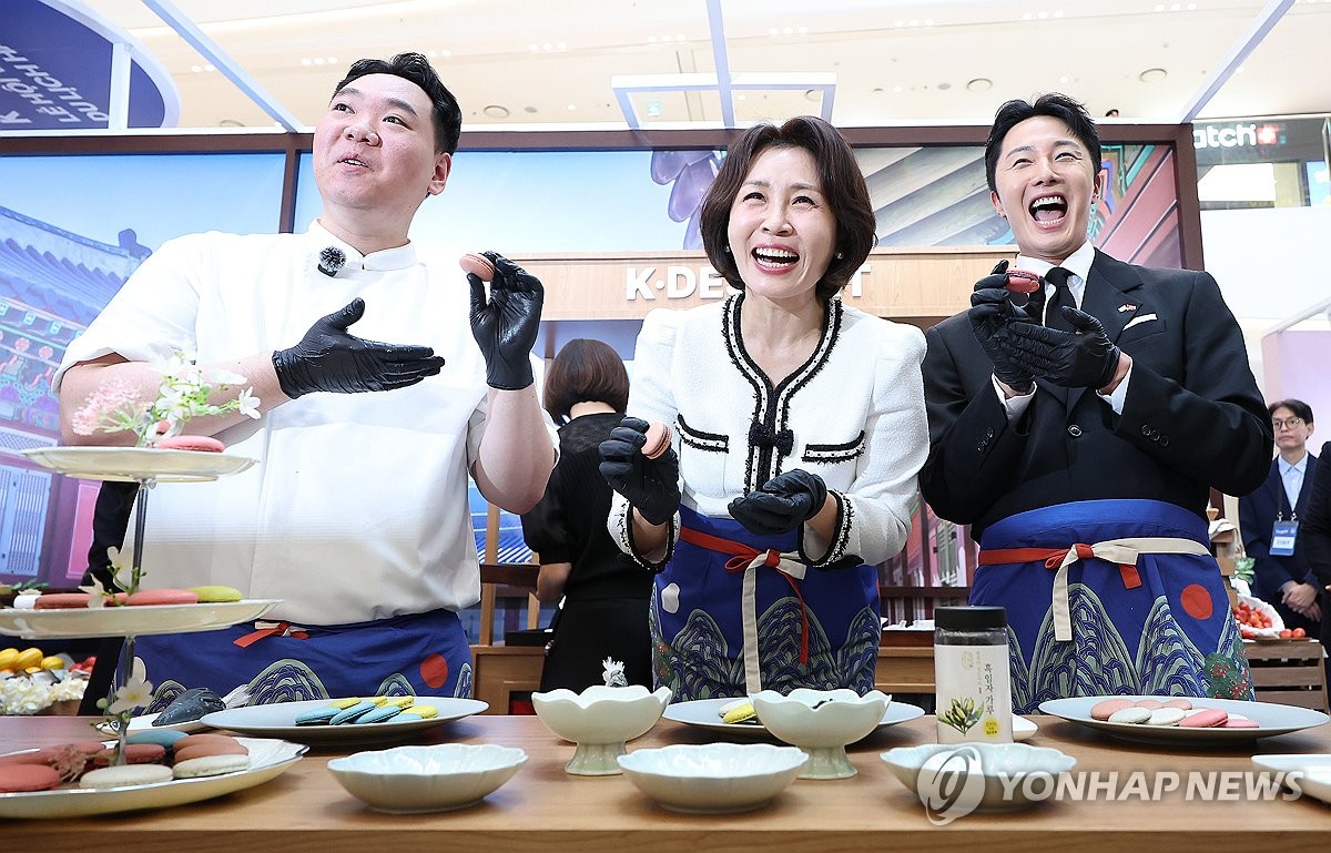 김 여사는 정일우와 약과를 시식하고 드라마 '폭군의 셰프'에 나왔던 고추장 버터 비빔밥, 마카롱을 만드는 시연 행사에 참여했다.