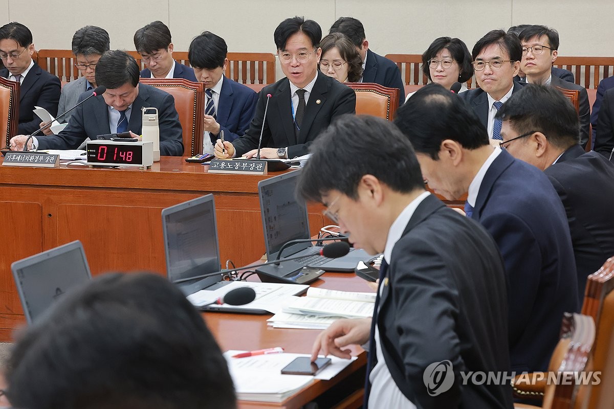 (서울=연합뉴스) 신현우 기자 = 2일 국회에서 열린 기후에너지환경노동위원회 전체회의에서 김영훈 고용노동부 장관이 의원 질의에 답하고 있다. 2026.4.2 nowwego@yna.co.kr