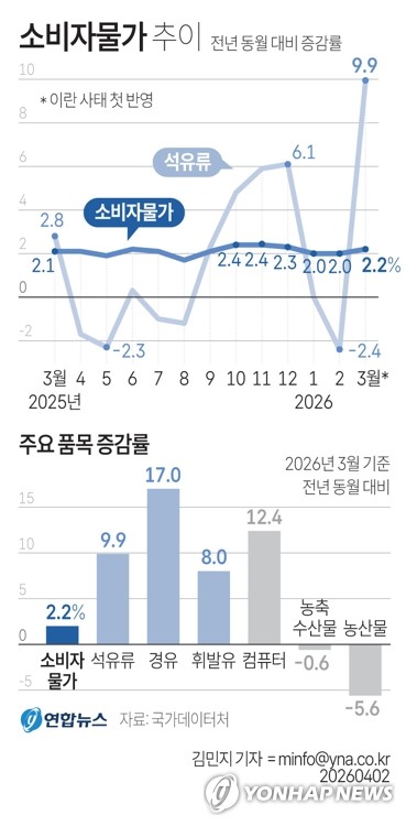 무엇보다 금리를 내릴 경우 전쟁 이후 들썩이는 물가와 환율에 자칫 기름을 부을 수 있다. 국제유가 급등과 함께 3월 소비자물가 상승률(전년동월대비 2.2%)은 한 달 사이 0.2%p 뛰었다.