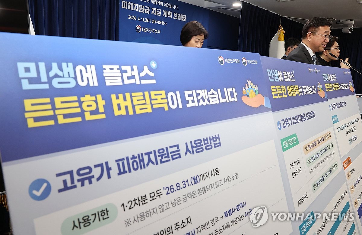 (서울=연합뉴스) 김주형 기자 = 윤호중 행정안전부 장관이 11일 정부서울청사에서 '고유가 피해지원금' 지급계획 등 주요 내용을 설명하고 있다. 2026.4.11 kjhpress@yna.co.kr