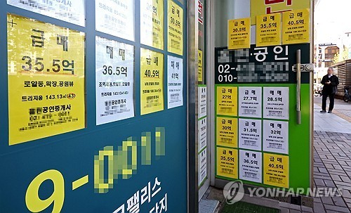 급매 매물판이 붙어 있는 서울의 한 중개사무소 모습.[연합뉴스 자료사진]