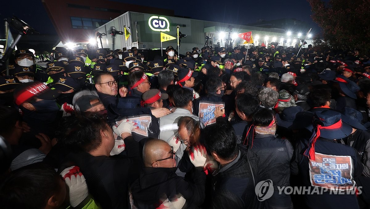 사고는 물류 차량 출차를 노조원이 막아서는 과정에서 발생한 것으로 추정된다.