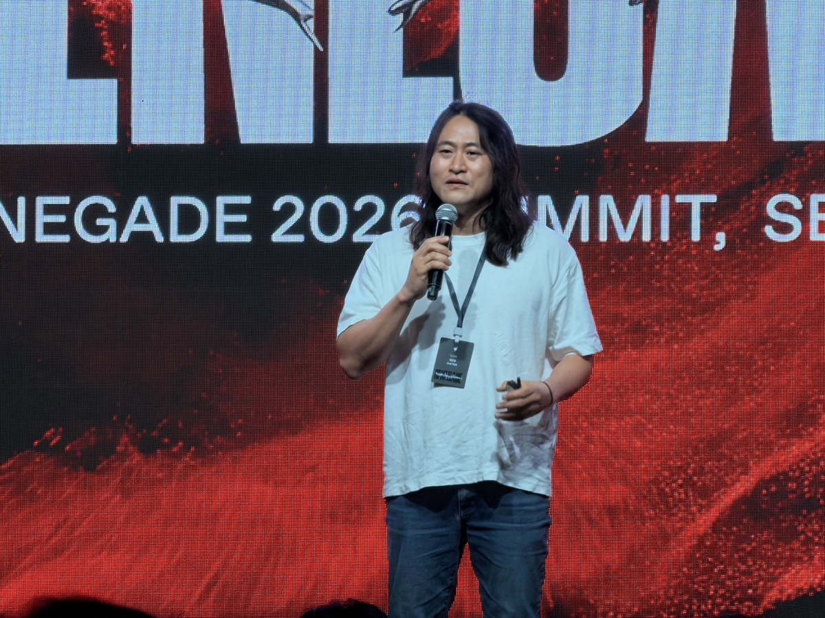 백준호 퓨리오사AI 대표가 2일 서울 강남구 에스제이쿤스트할레에서 열린 '레니게이드 2026 서밋'에서 발표하고 있다. [권하영 촬영. 재판매 및 DB 금지]