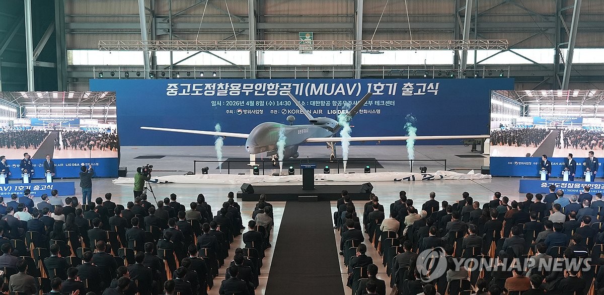 (서울=연합뉴스) 8일 부산 강서구 대한항공 테크센터에서 '중고도 정찰용 무인항공기(MUAV) 양산 1호기 출고기념식'이 열리고 있다. 2026.4.8 [대한항공 제공. 재판매 및 DB 금지] photo@yna.co.kr