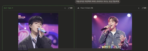 10초 가량이 지나자 덕테이프 모델이 생성한 이미지는 가수 이찬혁이 비비드라라러브를 부르는 모습이 한글 오류 없이 정확히 표시됐다.
