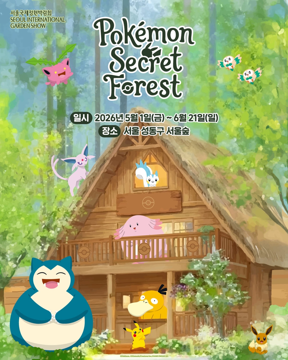 오는 5월 1일부터 6월 21일까지 열리는 '포켓몬 시크릿 포레스트'는 서울 성동구 서울숲공원에서 열리는 '2026 서울국제정원박람회' 일환으로 개장하며, 현장에서는 포켓몬 스토어 오리지널 상품을 만나볼 수 있다.