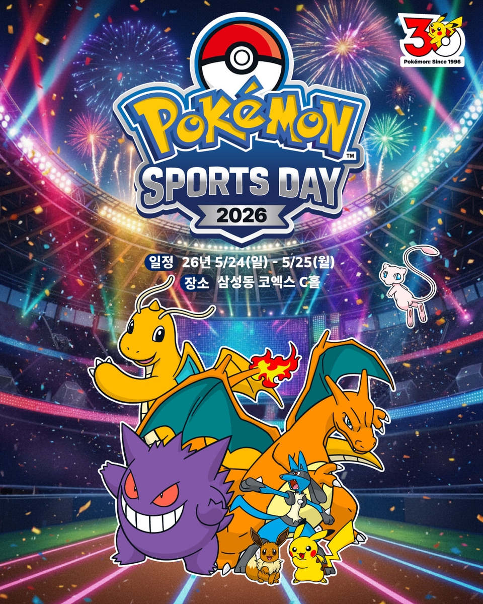 다음달 1일부터 31일까지는 '트렛드팟 바이 올리브영N 성수'에서 포켓몬과 함께하는 30주년 기념 특별 파티가 열리며, 5월 5일 어린이날 서울 한강 뚝섬공원 일대에서는 달리기 대회 '포켓몬 런 2026'이 열린다.