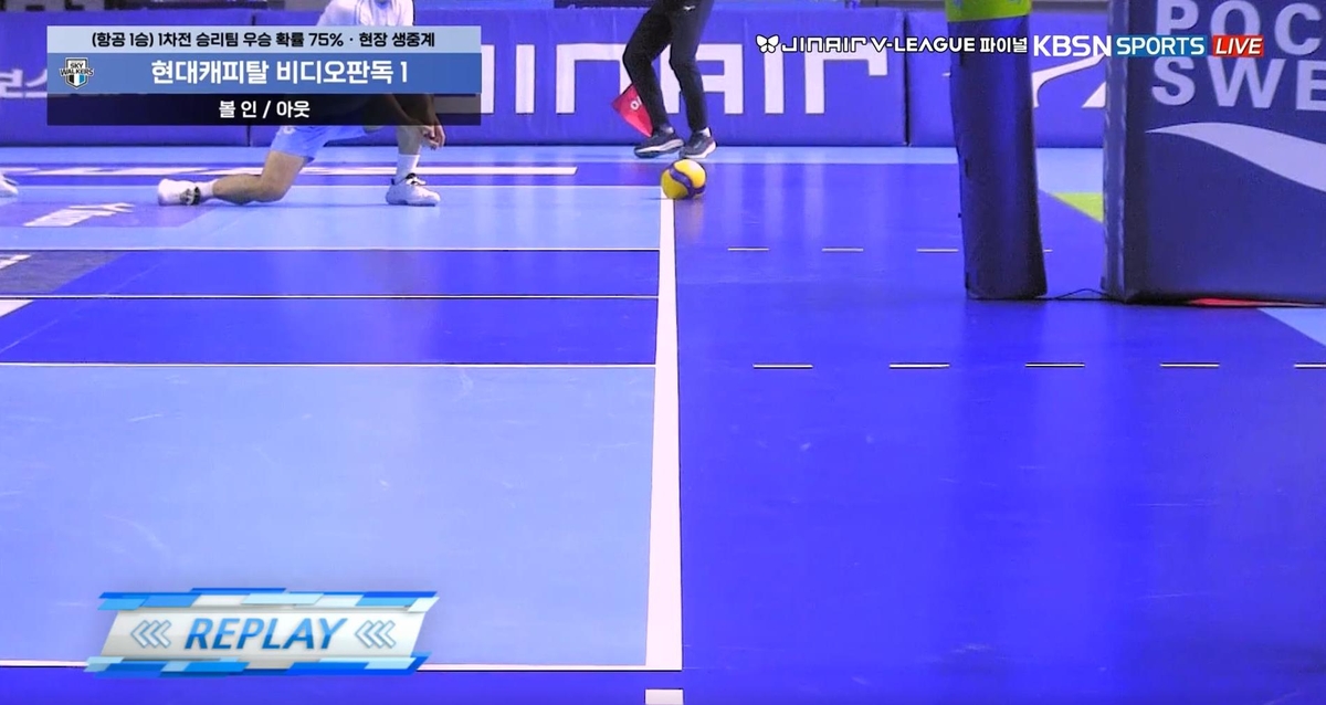 현대캐피탈은 이날 세트 점수 2-2로 맞선 5세트 14-13 매치포인트에서 나온 소속 팀 외국인 선수 레오나르도 레이바 마르티네스(등록명 레오)의 스파이크 서브가 아웃 판정된 뒤 비디오 판독을 요청했다.