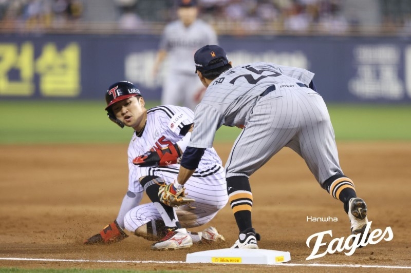 이때 1루 주자 오지환은 2루를 거쳐 3루까지 갔고, 한화 중견수 이원석은 3루수 김태연에게 곧바로 '레이저 송구'를 쐈다.