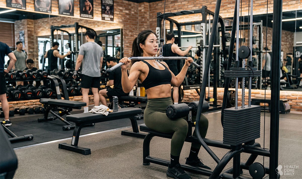 영상 속 한지혜가 열중한 동작 중 하나는 위에서 바를 아래로 당기는 ‘랫풀다운’이다. 이 운동은 주로 등 근육을 단련하지만, 바를 내리는 과정에서 복부와 몸의 중심을 잡는 코어 근육도 함께 자극한다. 바를 당길 때 몸이 앞뒤로 흔들리지 않게 버티는 과정에서 팔 근육까지 단련되는 일석이조의 효과가 있다. 반동을 이용하기보다는 천천히 움직일수록 복부의 긴장감이 오래 유지되어 운동 성과가 좋아진다.