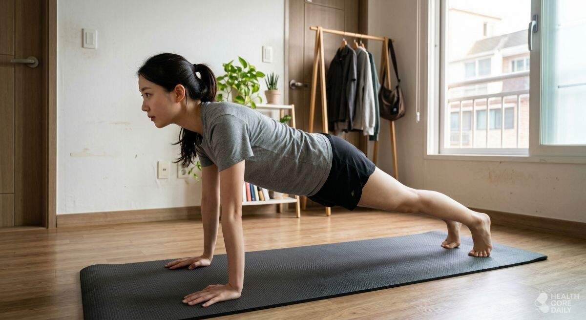 아랫배는 신체 부위 중에서도 가장 늦게 빠지는 곳 중 하나이기 때문에 체계으로 접근해야 한다. 특히 코어 근육이 약해지면 자세가 구부정해지고, 이는 배가 더 나와 보이는 원인이 된다. 따라서 전신 근육을 함께 사용하면서도 아랫배를 강하게 수축시키는 동작 위주로 운동을 구성하는 것이 좋다.