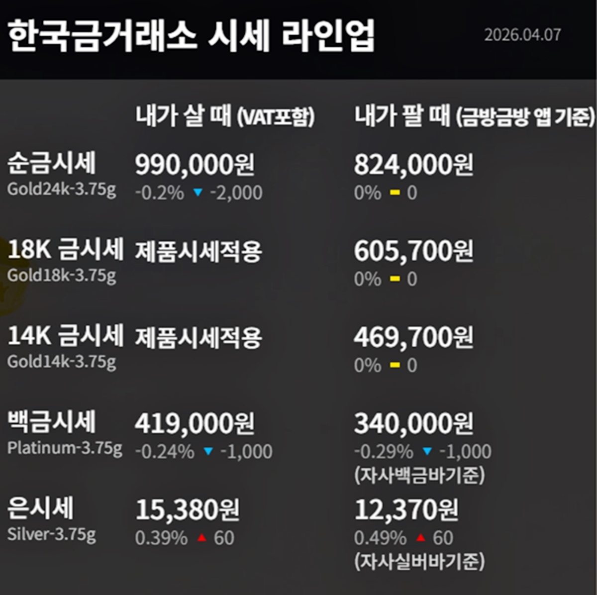 순금 : 매입가 98만 9000원 / 매도가 82만 5000원