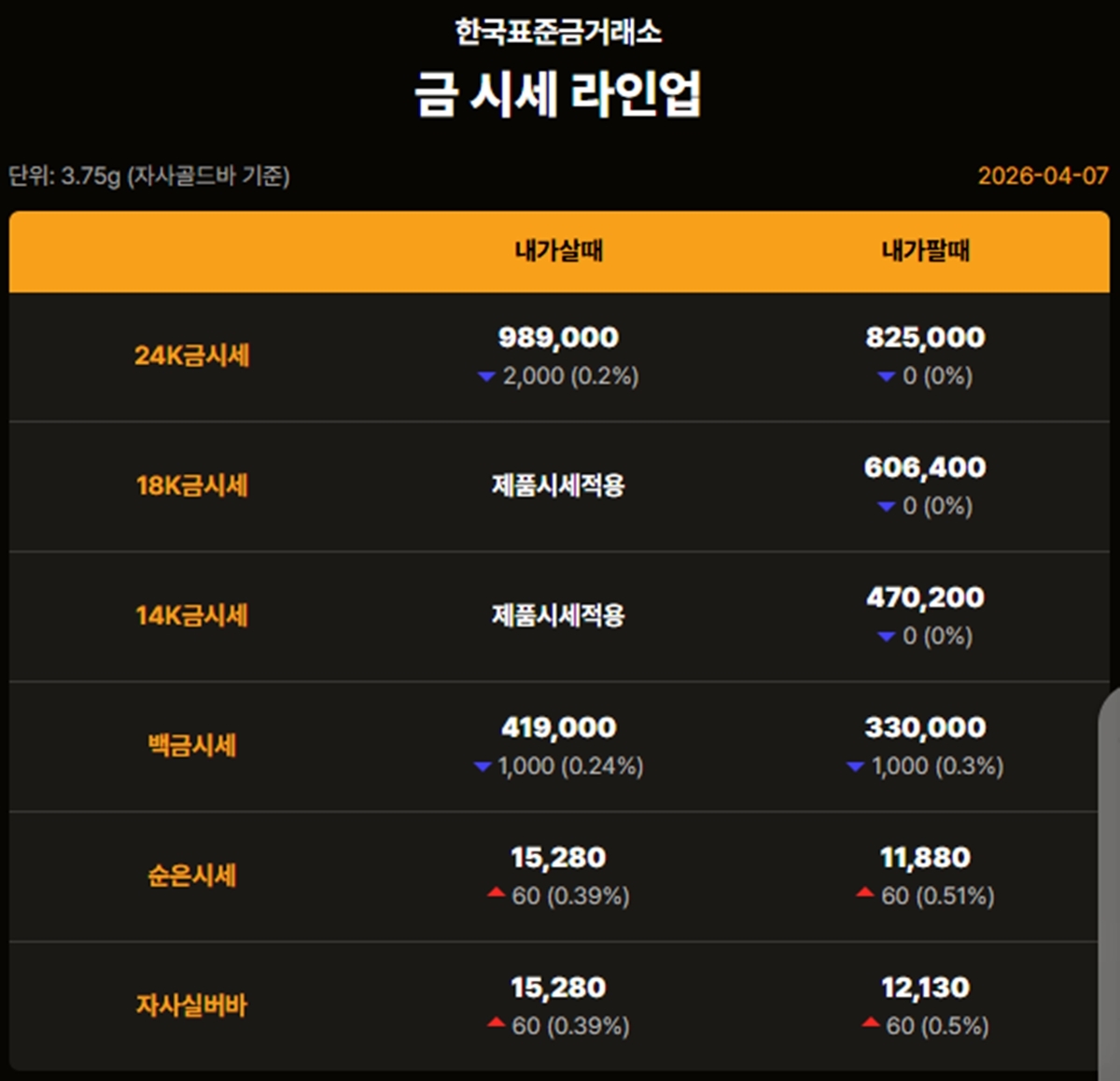 국내 금시세(금값)가 7일(이하 한국 시각) 오전 상승세(전 거래일 대비)를 보이다가 오후 하락세로 돌아섰다.