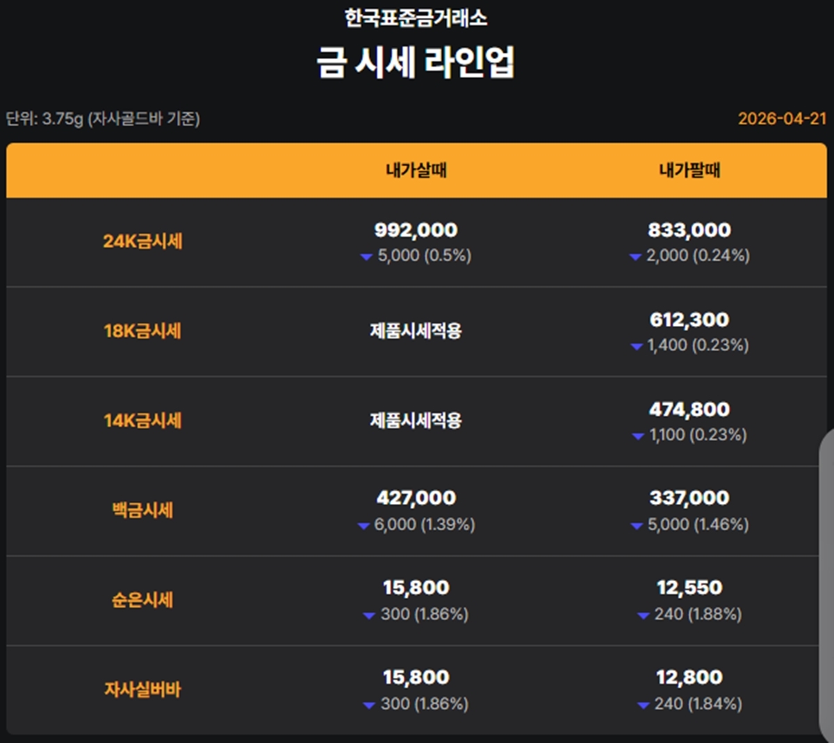 순금 : 매입가 99만 2000원 / 매도가 83만 3000원