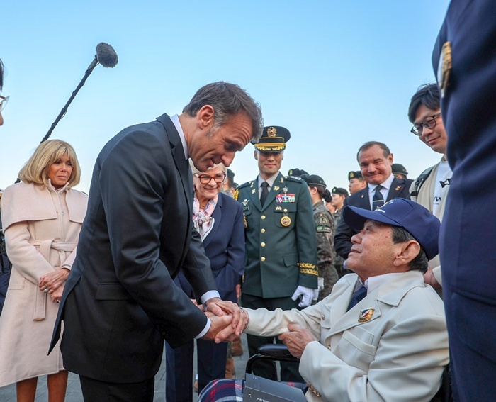 앞서 마크롱 대통령은 한국전 참전 용사에 대한 예우 일정도 소화했다. 그는 서울 용산에 위치한 전쟁기념관을 찾아 프랑스군 한국전 참전기념비에 헌화하며 희생을 기렸다. 이는 한국전쟁 당시 프랑스군의 참전을 기념하고 양국 간 역사적 연대를 강조하는 의미를 담고 있다.