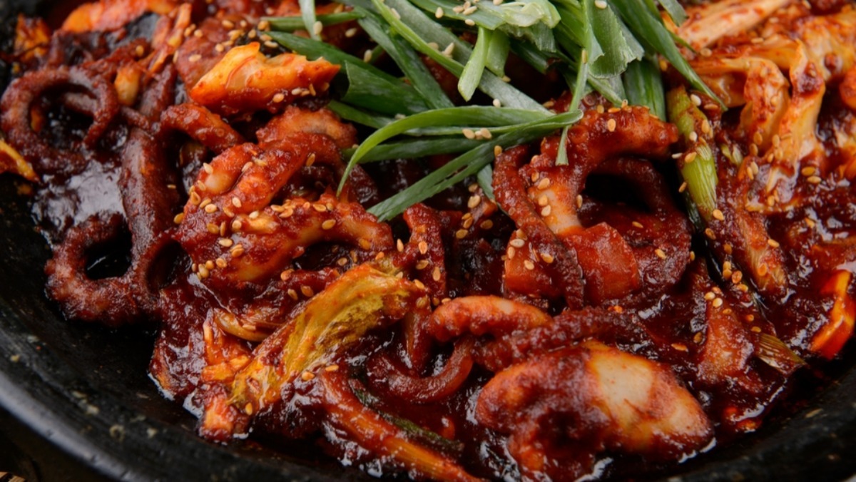 충분히 주무른 낙지는 흐르는 물에 여러 번 헹궈낸다. 맑은 물이 나올 때까지 씻어야 잡내가 나지 않는다. 손질한 낙지는 머리 안쪽의 내장과 눈, 입을 제거한 뒤 먹기 좋은 크기로 썰어둔다. 이때 낙지를 너무 작게 썰면 익으면서 크기가 줄어들어 나중에 씹는 맛이 덜할 수 있으므로 5~6센티미터 정도로 넉넉하게 써는 것이 좋다.