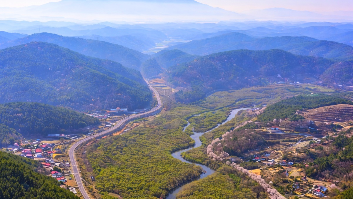 경남 진주에 자리한 진양호는 1970년 낙동강 수계 최초의 다목적 댐인 남강댐이 건설되면서 형성된 인공호수로, 호수 주위를 도는 일주도로가 정비되면서 가로수로 심은 벚나무들이 수령 30~50년을 넘기며 거대한 터널을 이루게 됐다.