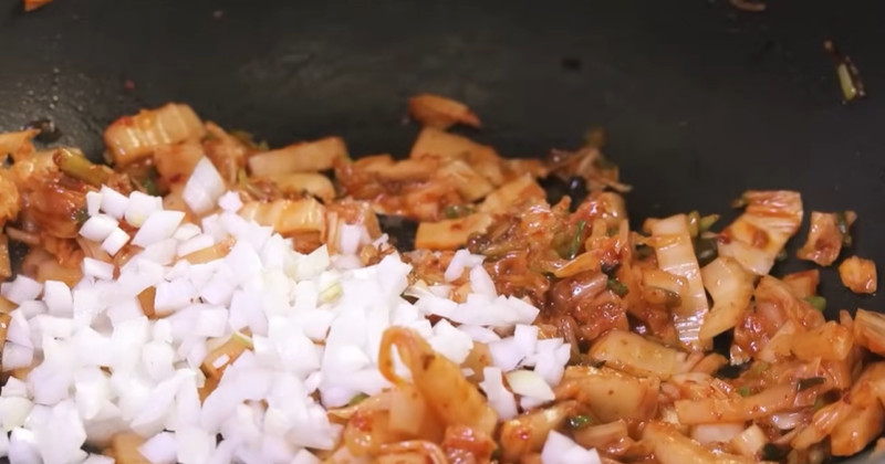 조리 과정에서 가장 중요한 첫 단계는 바로 파기름을 내는 것이다. 팬에 기름을 두르고 잘게 썬 파를 넣어 약한 불에서 천천히 볶는다. 파의 수분이 날아가면서 기름에 파 향이 스며들면, 팬 전체에 은은한 향이 퍼지기 시작한다. 이때 기름에 파가 충분히 녹아야만 이후 볶음 과정에서 밥과 김치, 채소가 파의 향을 흡수하게 된다. 기름과 파가 완벽히 어우러지면 김치볶음밥 전체가 한층 고소하고 깊은 맛을 내는 비결이 된다.