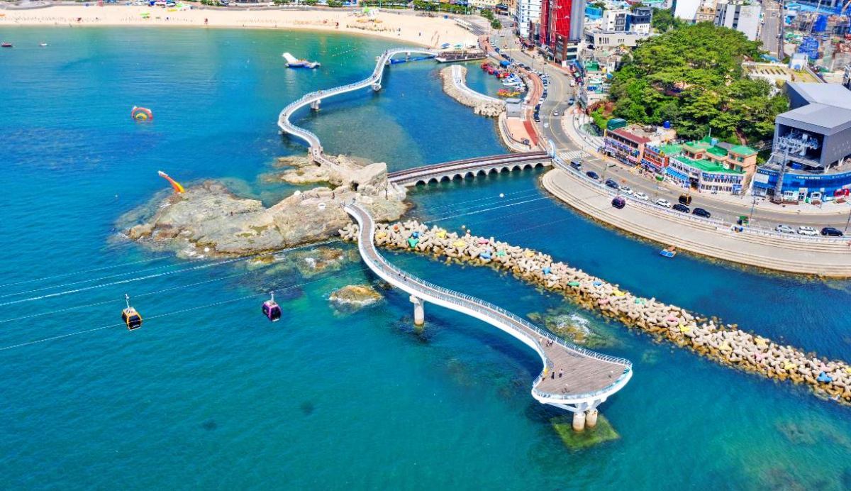 부산 송도해수욕장은 우리나라에서 처음 문을 연 공설 해수욕장으로, 오랜 시간 시민들의 쉼터 역할을 해온 곳이다. 1913년 개장한 이후 100년이 넘는 세월 동안 많은 이들의 발길이 이어졌고, 지금도 도심과 바다가 맞닿은 부산의 대표적인 해변 명소로 자리하고 있다. 화려한 도심 풍경과 너른 바다가 어우러지는 이곳은 사계절 내내 찾는 이가 많다. 특히 해 질 녘 수평선 너머로 붉게 물드는 노을은 바다와 도심의 불빛, 그리고 해상 케이블카의 조명이 만나 서정적인 분위기를 자아낸다.