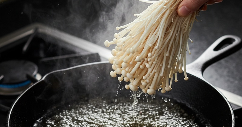 조리 방법도 매우 간단하다. 먼저 팽이버섯의 밑동을 잘라내고 적당한 크기로 나눈 뒤, 흐르는 물에 가볍게 씻어 물기를 제거한다. 이후 튀김가루와 물을 1대1 비율로 섞어 반죽을 만든다. 이때 반죽은 너무 되직하지 않게, 살짝 묽은 정도로 맞추는 것이 중요하다. 반죽이 너무 두꺼우면 팽이버섯의 식감이 살아나지 않고, 지나치게 묽으면 바삭함이 떨어질 수 있다.