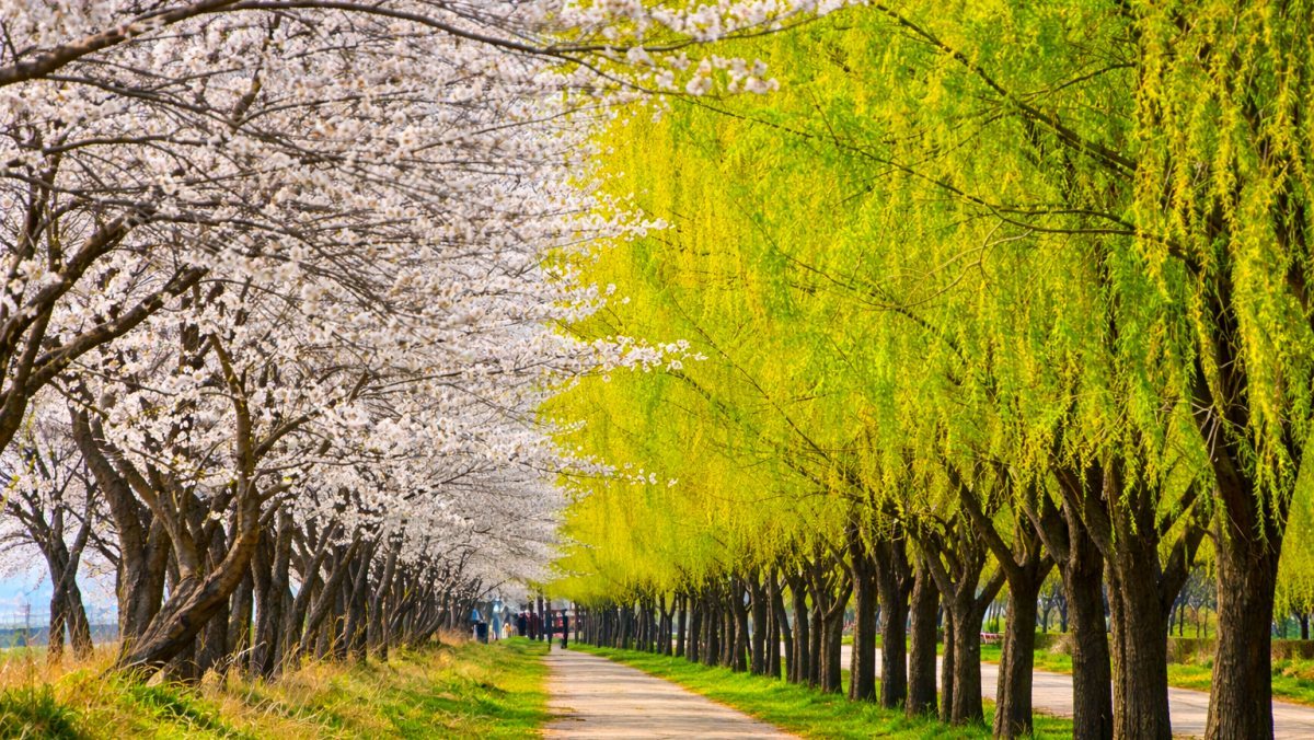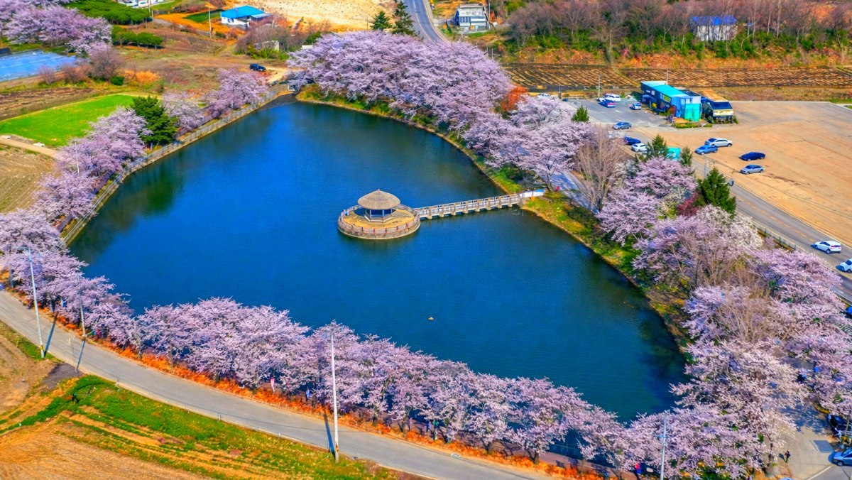 충남 당진의 합덕제(合德堤)가 봄을 맞아 화려한 벚꽃과 버드나무가 어우러진 장관을 뽐내며 상춘객들의 이목을 끌고 있다.
