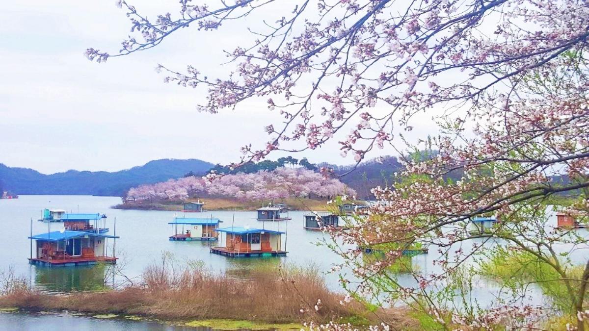 특히 봄철 벚꽃 시즌의 주인공은 호수 한가운데 떠 있는 듯한 붕어섬이다. 이 시기 붕어섬은 섬 전체를 뒤덮은 벚꽃 덕분에 거대한 벚꽃 섬 같은 풍경을 연출하며 감탄을 자아낸다. 78만 평의 드넓은 호수면 위로 분홍빛 물결이 넘실거리는 듯한 풍경은 붕어섬만의 인상적인 경관이다. 온라인 커뮤니티와 SNS에서도 물안개 낀 새벽의 붕어섬이 몽환적이라는 평가와 함께, 호수와 어우러진 벚꽃 섬의 자태가 인상적이라는 방문객들의 호평이 이어지고 있다.