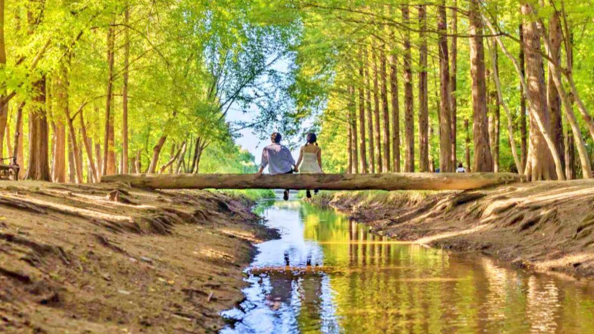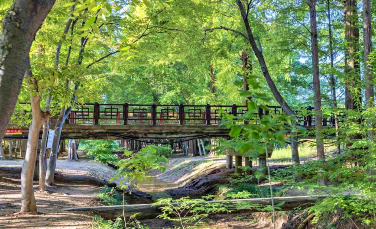 입구를 지나 아스팔트 길을 경계로 서쪽에는 여전히 연구 시설이 자리하고, 동쪽으로는 오솔길과 개울, 다양한 테마 정원이 펼쳐진다. 가장 먼저 눈에 들어오는 풍경은 하늘을 향해 곧게 뻗은 메타세쿼이아 숲길이다. 이곳의 상징으로 꼽히는 거울숲은 실개천 위에 놓인 외나무다리가 중심을 이룬다. 물결이 잔잔한 개울물 위로 숲과 사람이 또렷하게 비치는 장면은 이곳을 찾은 이들이 오래 머무는 이유를 짐작하게 한다.