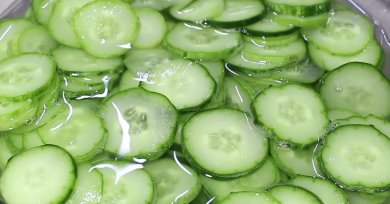 다음은 절임 과정이다. 냄비에 물 500ml를 넣고 끓인 뒤 천일염 2와 1/2스푼을 넣어 완전히 녹인다. 이 소금물을 뜨거운 상태로 오이에 부어 10분 정도 절인다. 이 과정은 오이의 수분을 적절히 빼내고 아삭한 식감을 유지하는 데 핵심적인 역할을 한다. 단순히 생으로 볶을 경우 물이 과하게 나오면서 맛이 싱거워질 수 있기 때문에 절임 과정은 생략하지 않는 것이 좋다.