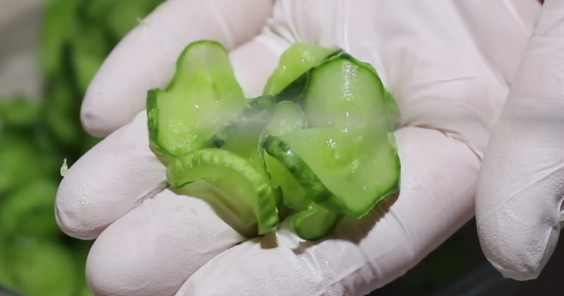 10분이 지나면 오이를 체에 밭쳐 물기를 빼고, 손으로 가볍게 눌러 남은 수분을 제거한다. 이때 너무 세게 짜면 식감이 지나치게 질겨질 수 있으므로 적당한 힘으로 눌러주는 것이 중요하다. 물기를 잘 제거해야 볶는 과정에서 수분이 과하게 나오지 않고 양념이 제대로 배어든다.