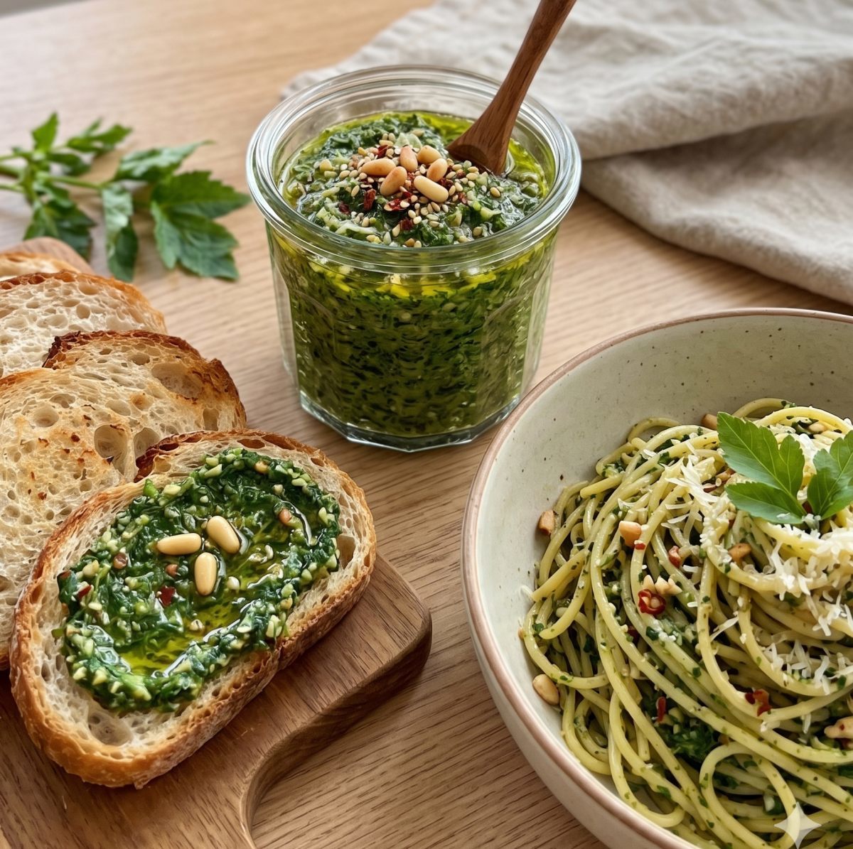 마지막으로 서양식 조리법을 빌려 방풍나물 페스토를 만들어보는 것도 이색적이다. 데친 방풍나물의 물기를 꽉 짠 뒤 믹서기에 볶은 견과류와 올리브유, 마늘, 치즈 가루를 넣고 함께 갈아내면 된다. 이렇게 만든 소스는 빵에 발라 먹어도 좋고, 삶은 파스타 면에 그대로 버무려 방풍나물 파스타로 즐길 수도 있다. 한국적인 나물의 향이 올리브유와 만나 이국적이면서도 세련된 맛을 선사한다.