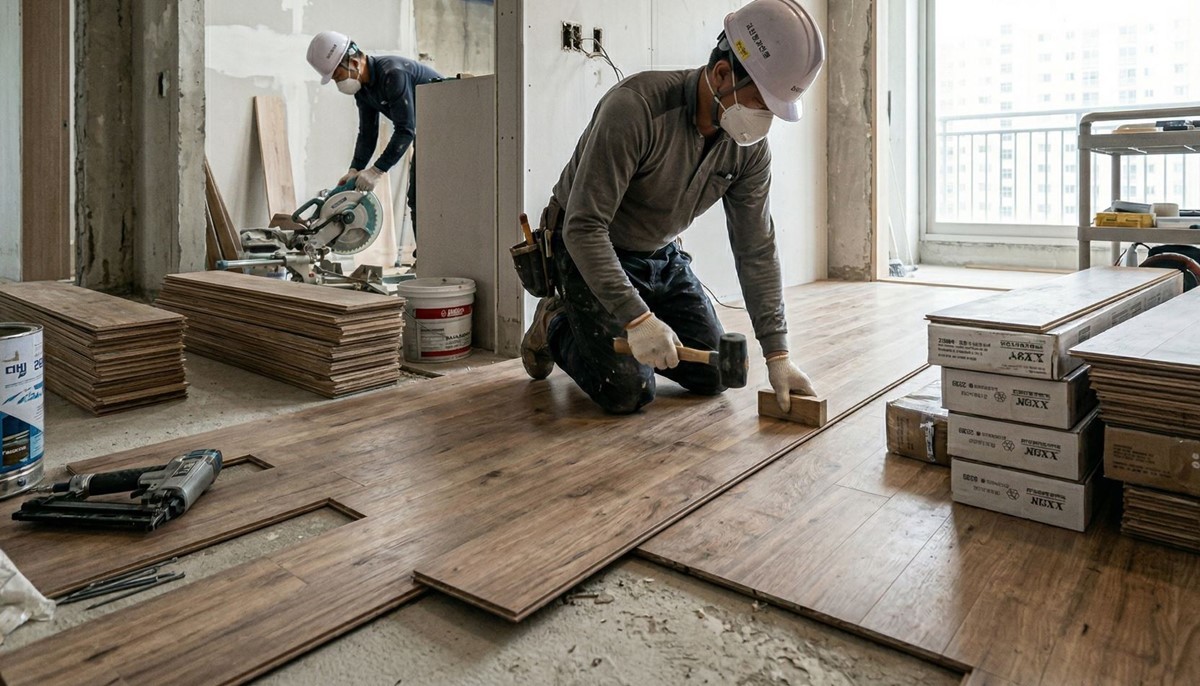 아파트 인테리어를 마친 뒤 가장 오래 남는 후회 중 하나는 의외로 바닥재에서 시작된다. 조명이나 벽지, 가구는 시간이 지나면 바꾸거나 분위기를 조정할 여지가 있지만 바닥은 한번 시공하면 다시 손대기가 쉽지 않다.