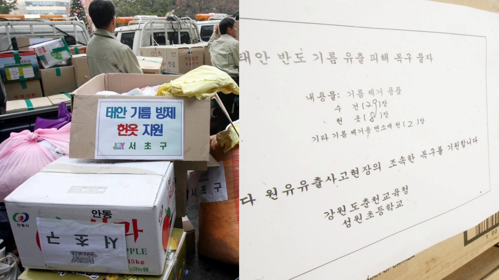 작업 여건도 넉넉하지 않았다. 보호복과 장비는 초반에 크게 부족했고 흡착포가 모자라 헌옷이나 수건으로 기름을 닦아내는 일도 이어졌다. 그 빈자리를 메운 건 전국에서 몰려든 자원봉사자들과 구호 물품이었다. 장갑과 마스크 같은 기본 장비부터 생활용품까지 현장으로 끊임없이 들어왔고 부족한 장비를 사람들의 손길이 메우는 장면이 반복됐다.