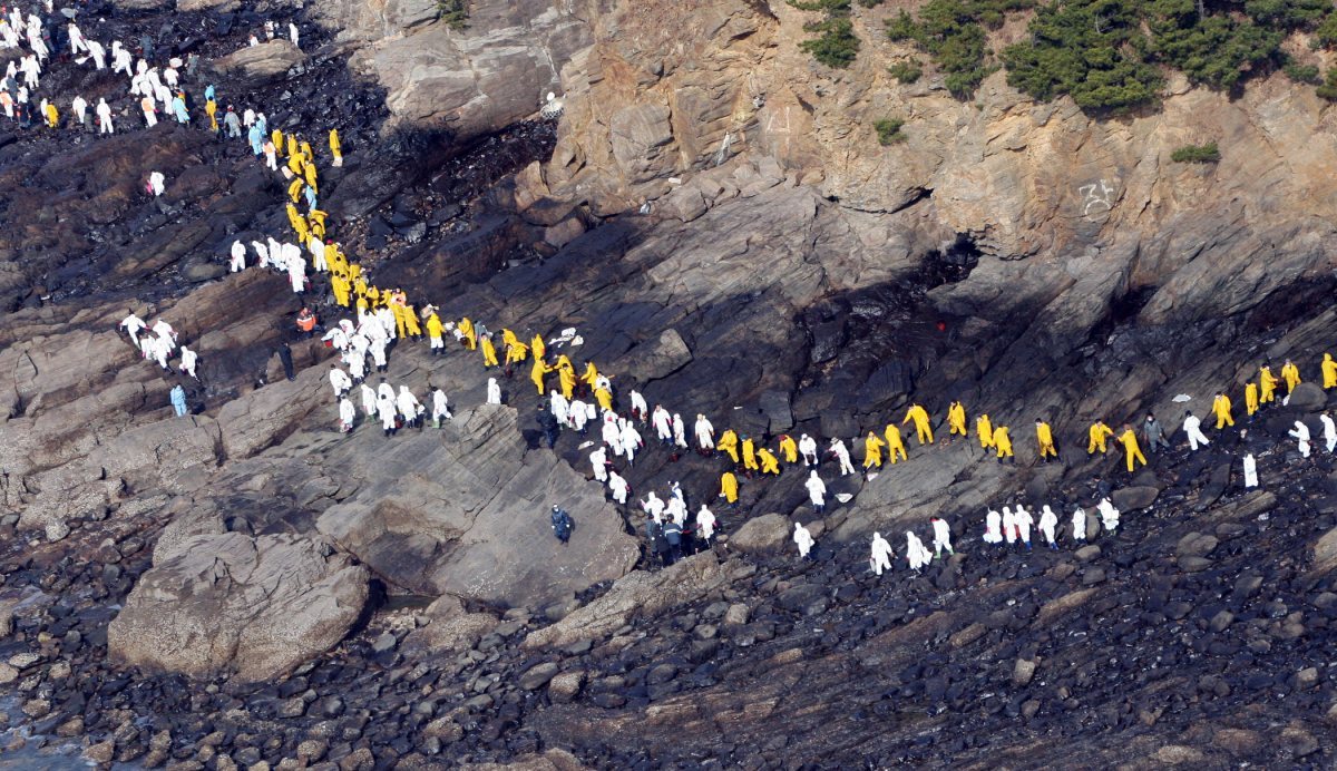 차가운 겨울 바닷바람 속에서 사람들은 허리를 굽힌 채 바위 표면을 문지르고 모래에 밴 기름을 퍼내고 갯벌에 엉겨 붙은 기름을 떼어냈다. 가까이서 보면 끝이 없어 보이는 작업이었지만 같은 자리에 여러 사람이 달라붙으면서 해안선은 조금씩 색을 되찾기 시작했다. 대학생과 직장인, 종교단체, 지역 주민, 군 장병은 물론이고 연예인들까지 현장을 찾았고 성탄절과 연말에도 봉사 행렬은 끊기지 않았다.