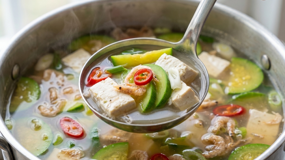 이제 본격적으로 끓이는 단계다. 우러난 육수에 먼저 애호박을 넣는다. 애호박은 비교적 빨리 익는 채소이기 때문에 너무 오래 끓이지 않는 것이 포인트다. 이어 새우젓 한 숟갈과 다진 마늘 반 숟갈을 넣어 간을 맞춘다. 새우젓은 국물에 깊은 감칠맛을 더해주며, 마늘은 풍미를 끌어올리는 역할을 한다. 국물이 한 번 끓어오르면 두부를 넣고 다시 끓인다.