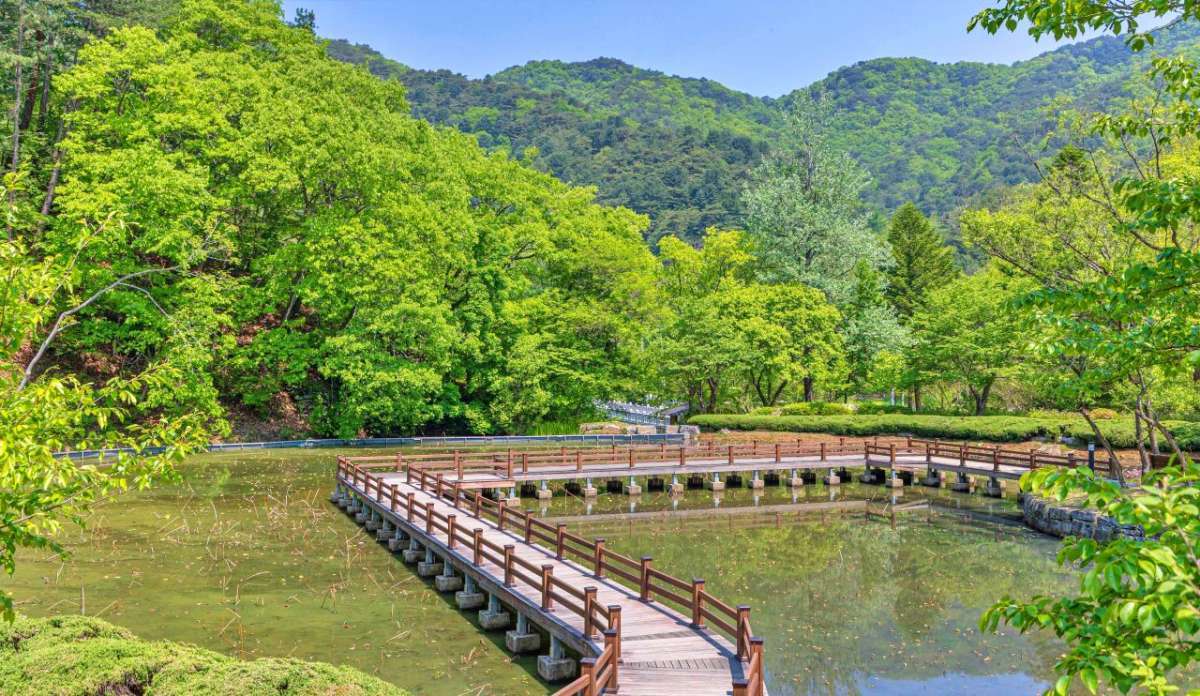 수타사 주변에는 자연을 더 가까이에서 체감할 수 있는 산소길도 조성돼 있다. 이 길은 계곡을 따라 이어지는 평탄한 산책로로, 귕소와 출렁다리를 지나는 구간이 특히 잘 알려져 있다. ‘귕’은 소 여물통을 뜻하는 강원도 방언이다. 거대한 암반이 오랜 시간 물에 깎여 여물통처럼 움푹 파인 모습에서 이름이 붙었다. 옥빛 물이 고인 귕소 주변으로는 숲이 짙은 그늘을 드리우고 있어 계절에 따라 다른 분위기를 느낄 수 있다. 산을 오르는 부담 없이 계곡 풍경을 가까이서 보고 싶은 여행자에게 잘 맞는 코스다. 가족 단위 방문객이나 가벼운 산책을 선호하는 이들이 함께 걷기에도 무리가 없다. 계곡을 따라 이어지는 길의 완만한 흐름 덕분에 사찰 방문 뒤 가볍게 걷기에도 알맞다.