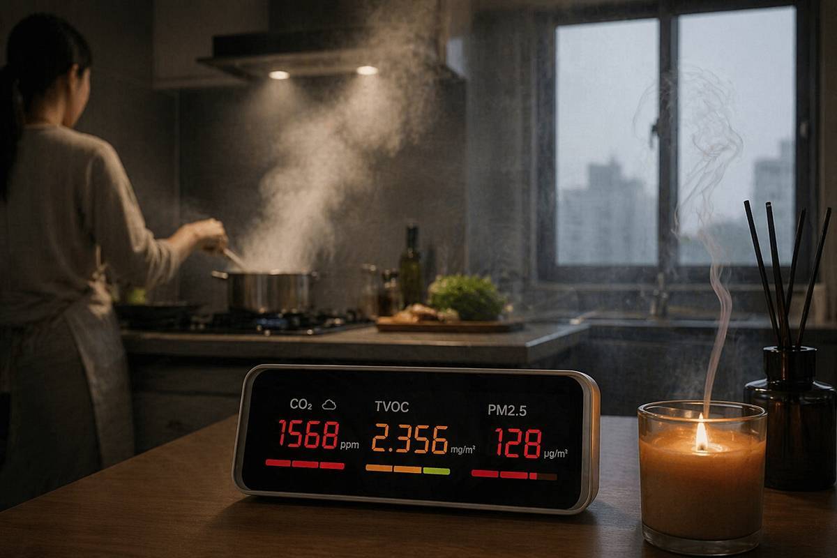 실제로 집에서 요리하는 시간이 길어지고, 창문을 닫은 채 생활하는 시간이 늘어나면 이산화탄소와 휘발성유기화합물, 실내 미세먼지 농도는 높아질 수 있다. 특히 가스로 조리한 뒤 환기를 하지 않거나, 향초까지 함께 태우면 순간적으로 실내 공기 질이 바깥보다 더 나빠질 수 있다. 벤조피렌, 포름알데하이드, 이산화질소 같은 유해물질이 동시에 발생할 수 있어서다.