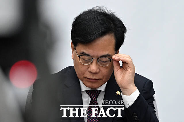 [더팩트ㅣ국회=서예원 기자] 송언석 국민의힘 원내대표(가운데)가 3일 오전 서울 여의도 국회에서 열린 국민의힘 원내대책회의에서 모두 발언을 하고 있다.