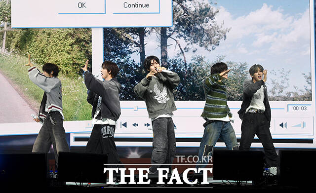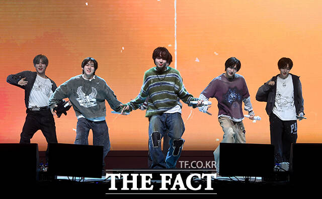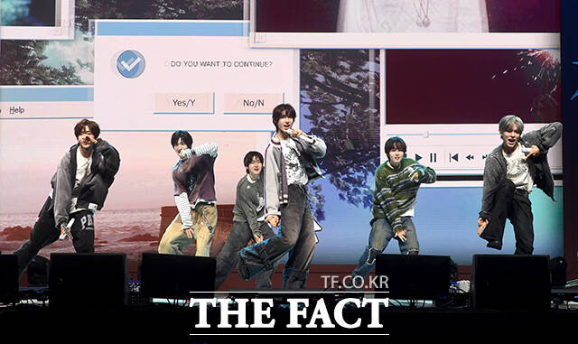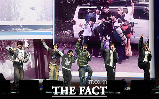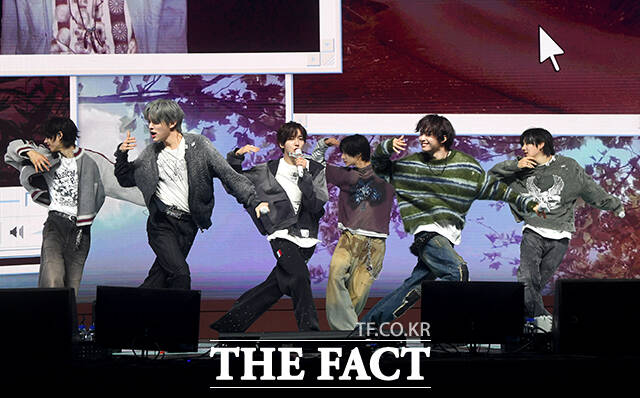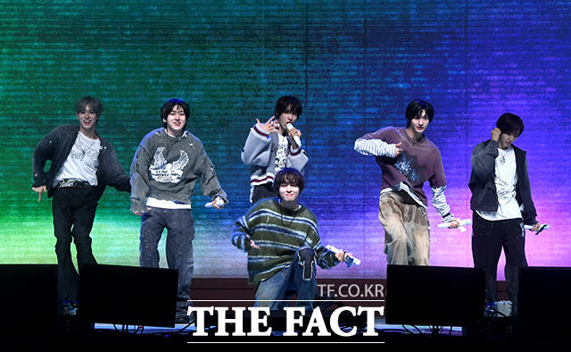 [더팩트 | 박상민 기자] 그룹 킥플립(KickFlip)이 6일 오후 서울 광진구 예스24 라이브홀에서 열린 네 번째 미니앨범 'My First Kick(마이 퍼스트 킥)' 발매 기념 쇼케이스에 참석해 수록곡 'Twenty(트웬티)' 무대를 펼치고 있다.