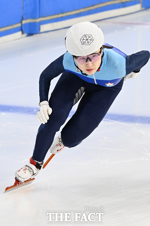 [더팩트 | 김성렬 기자] 쇼트트랙 최민정이 7일 오후 서울 양천구 목동실내빙상장에서 열린 '2026-2027 쇼트트랙 국가대표 선발전' 여자 1500m 결승에서 역주하고 있다. ksr@tf.co.kr사진영상기획부 photo@tf.co.kr