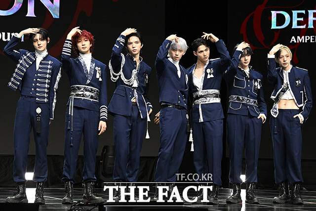 [더팩트 | 송호영 기자] 그룹 앰퍼샌드원(AMPERS&ON)의 김승모와 카이렐, 브라이언, 나캠든, 마카야, 윤시윤, 최지호가 8일 오후 서울 용산구 노들섬 라이브하우스에서 열린 미니 4집 'DEFINITION(데피니션)' 쇼케이스에서 포토타임을 갖고 있다.