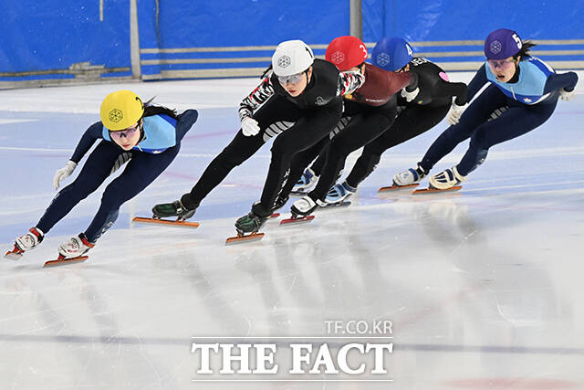 [더팩트 | 김성렬 기자] 쇼트트랙 최민정이 8일 오후 서울 양천구 목동실내빙상장에서 열린 '2026-2027 쇼트트랙 국가대표 1차 선발대회' 여자 500m 결승에서 역주하고 있다.