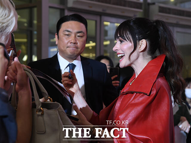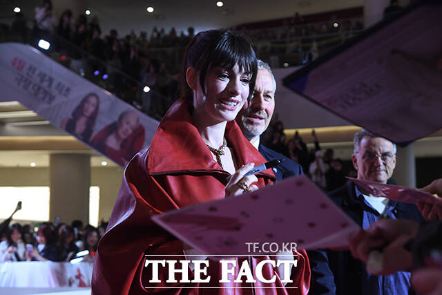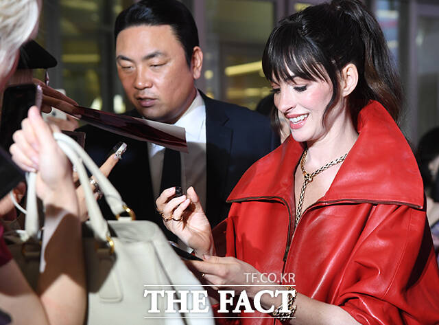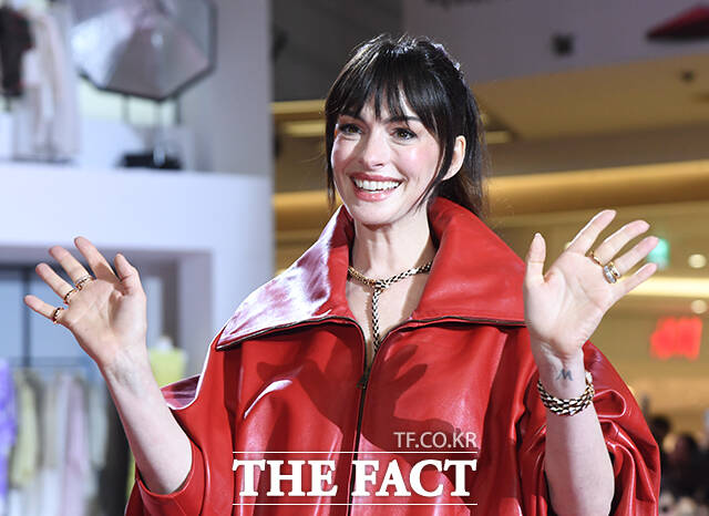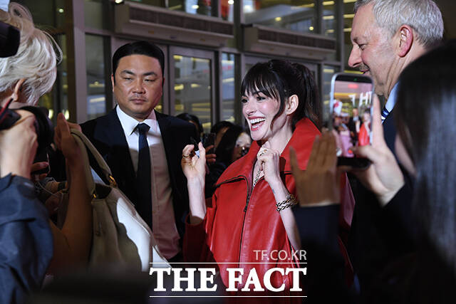 [더팩트 | 박상민 기자] 할리우드 배우 앤 해서웨이가 8일 오후 서울 영등포구 타임스퀘어에서 열린 영화 '악마는 프라다를 입는다2' 레드카펫 행사에 참석해 팬들과 인사를 나누고 있다.