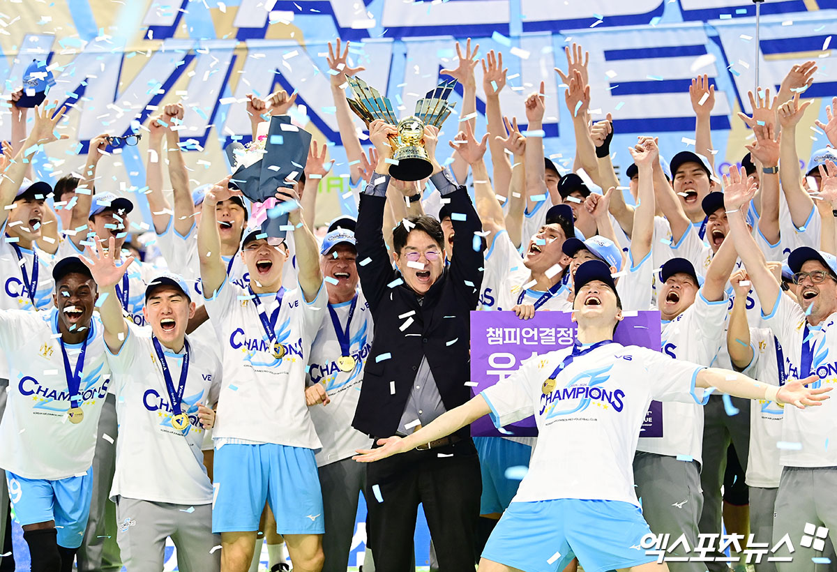 우승 트로피 들어올린 조원태 구단주[포토]