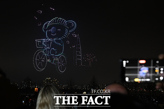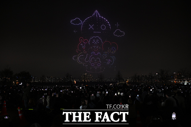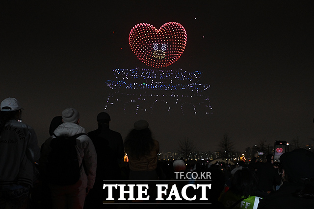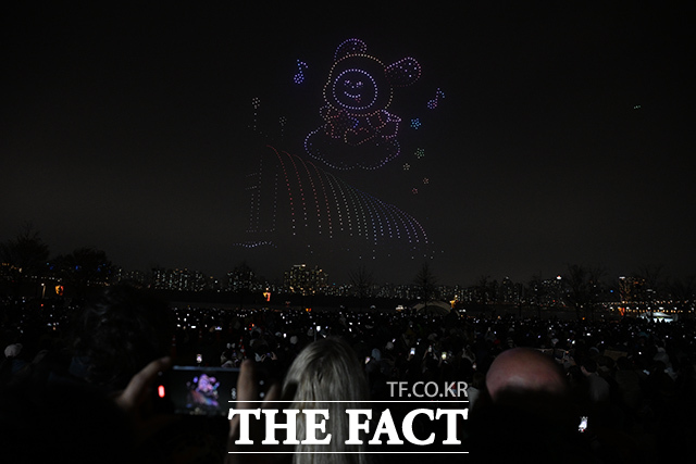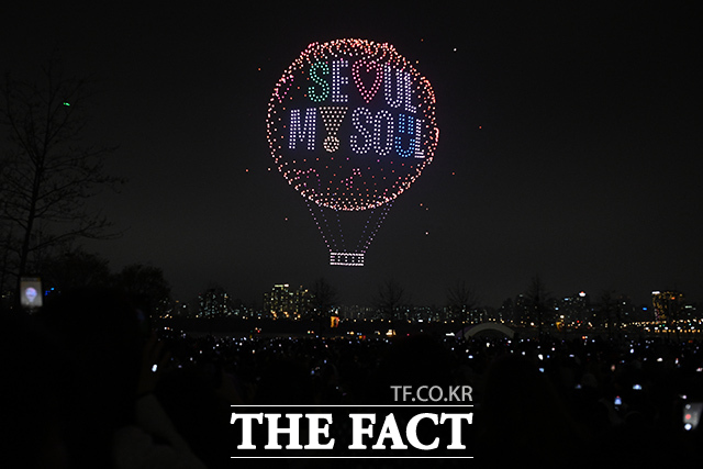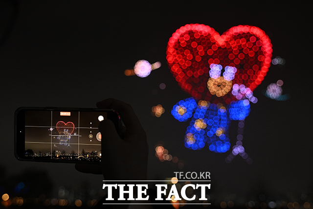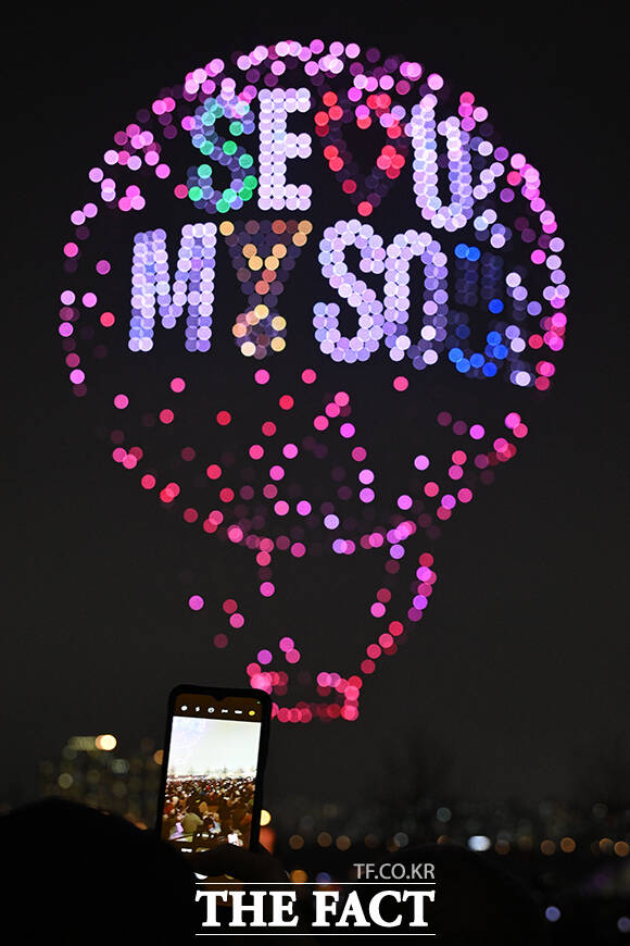 [더팩트 | 김성렬 기자] ‘한강 불빛 공연’(드론 라이트 쇼)이 10일 오후 서울 영등포구 여의도한강공원에서 펼쳐지고 있다.