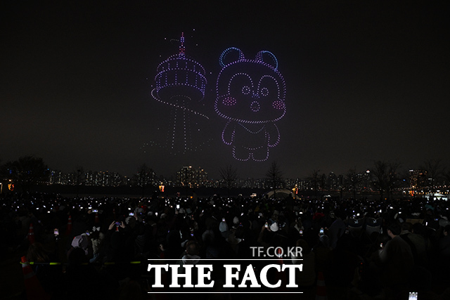 올해 첫 공연이 열린 여의도 한강공원에서는 그룹 방탄소년단(BTS)과 라인프렌즈가 함께 합작한 캐릭터 브랜드 ‘BT21’ 테마로 한강 야경을 밝혔다.