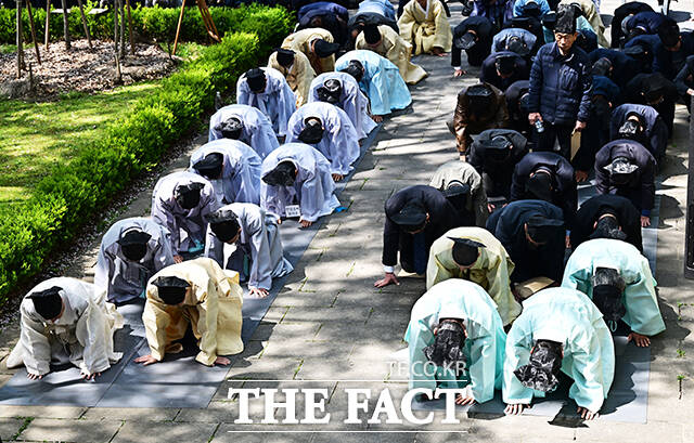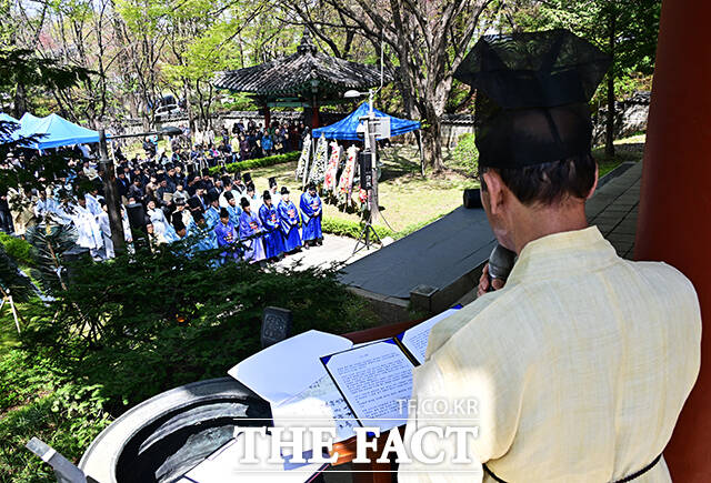 [더팩트ㅣ배정한 기자] 단종을 향한 변치 않는 절개를 지켰던 사육신(死六臣)의 넋을 기리는 봄 제례, 춘향제가 12일 오전 서울 동작구 노량진 사육신공원 내 사육신의 위패를 모신 사당 의절사에서 엄숙히 봉행됐다.