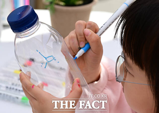 [더팩트ㅣ이새롬 기자] 18일 서울 광화문 광장에서 서울시와 녹색서울시민위원회 주최로 '2026 지구의 날 기념행사'가 열린 가운데, 행사를 찾은 어린이들이 텀블러로 음료를 받고 있다.