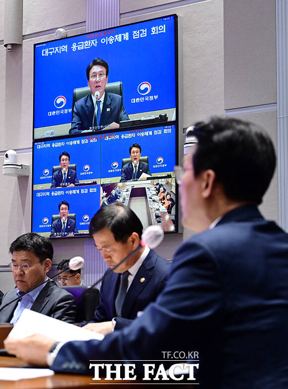 [더팩트ㅣ임영무 기자] 김민석 국무총리가 21일 오후 서울 종로구 정부서울청사 서울상황센터에서 열린 대구지역 응급환자 이송체계 점검회의에 참석해 모두발언을 하고 있다.
