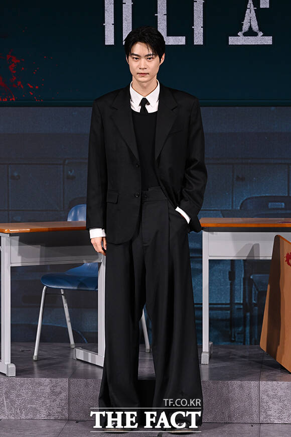 [더팩트 | 김성렬 기자] 박윤서 감독과 배우 노재원, 이효제, 강미나, 전소영, 현우석(왼쪽부터)이 21일 오후 서울 용산구 CGV 용산아이파크몰에서 열린 넷플릭스 새 시리즈 '기리고' 기자간담회에 참석해 포즈를 취하고 있다.