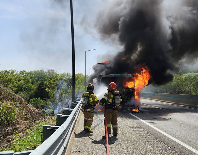 소방당국에 따르면 이날 오후 1시 57분쯤 성주군 초전면 봉정리 중부내륙고속도로 양평방향 95km 지점에서 운행 중이던 25톤 화물트럭에서 불이 났다. 신고는 같은 시각 접수됐으며, 출동한 소방대에 의해 오후 2시 33분에 완전히 진화됐다.